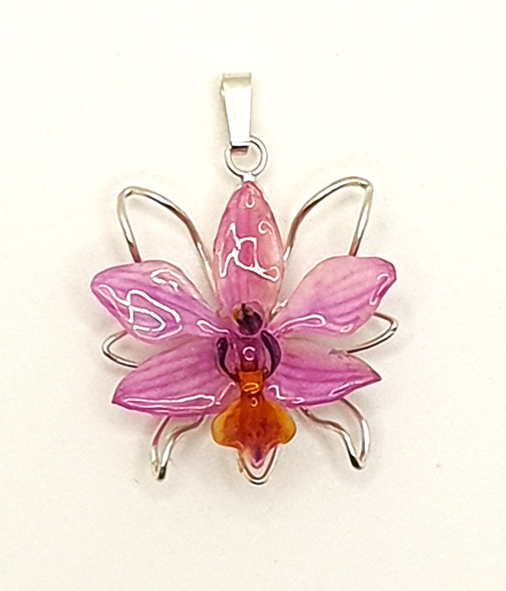 Collier Orchidée "Dendrobium" au contour plaqué or